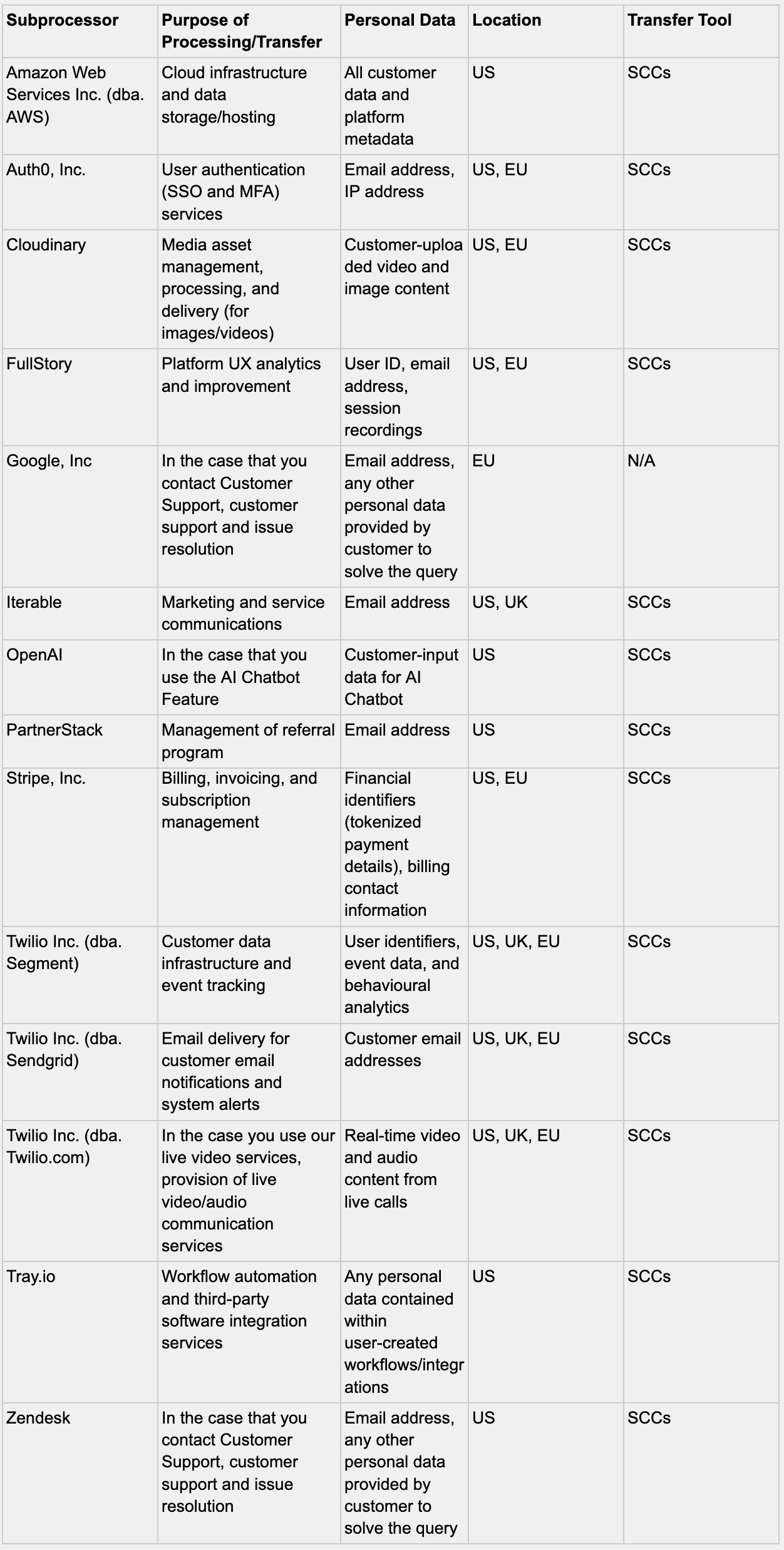 Where SCCs safeguards canāt provide an equivalent level of protection for data transferred to third countries, VideoAsk has included supplementary security measures to cover the risks identified in said countries.